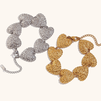 망치 질감 하트 팔찌, 스테인레스 스틸 18K 도금 팔찌 여성을 위한 세련되고 다양한 액세서리