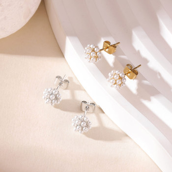 새로운 꽃다발 스테인리스 스틸 모조 진주 스터드 귀걸이 여성용 우아하고 심플한 프렌치 레트로 귀걸이