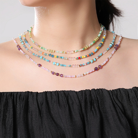 여름 고급 여성용 목걸이 여성용 천연 다채로운 크리스탈 도파민 스톤 비즈 목걸이