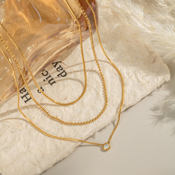 สร้อยคอสแตนเลสเซอร์คอนหลากชั้นสำหรับผู้หญิงจี้รูปทรงเรียบง่าย