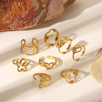 แหวนทรงเรขาคณิตรูปหัวใจผีเสื้อสำหรับผู้หญิงแหวนสแตนเลสออกแบบเฉพาะรูปทรงดอกไม้