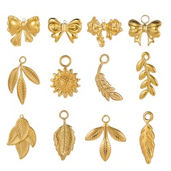 จี้ห้อยรูปดอกทานตะวันรูปใบไม้แบบเรียบง่ายทำจากสแตนเลส PVD สีทองแบบทำมือสำหรับทำต่างหูสร้อยคอทุกวัน